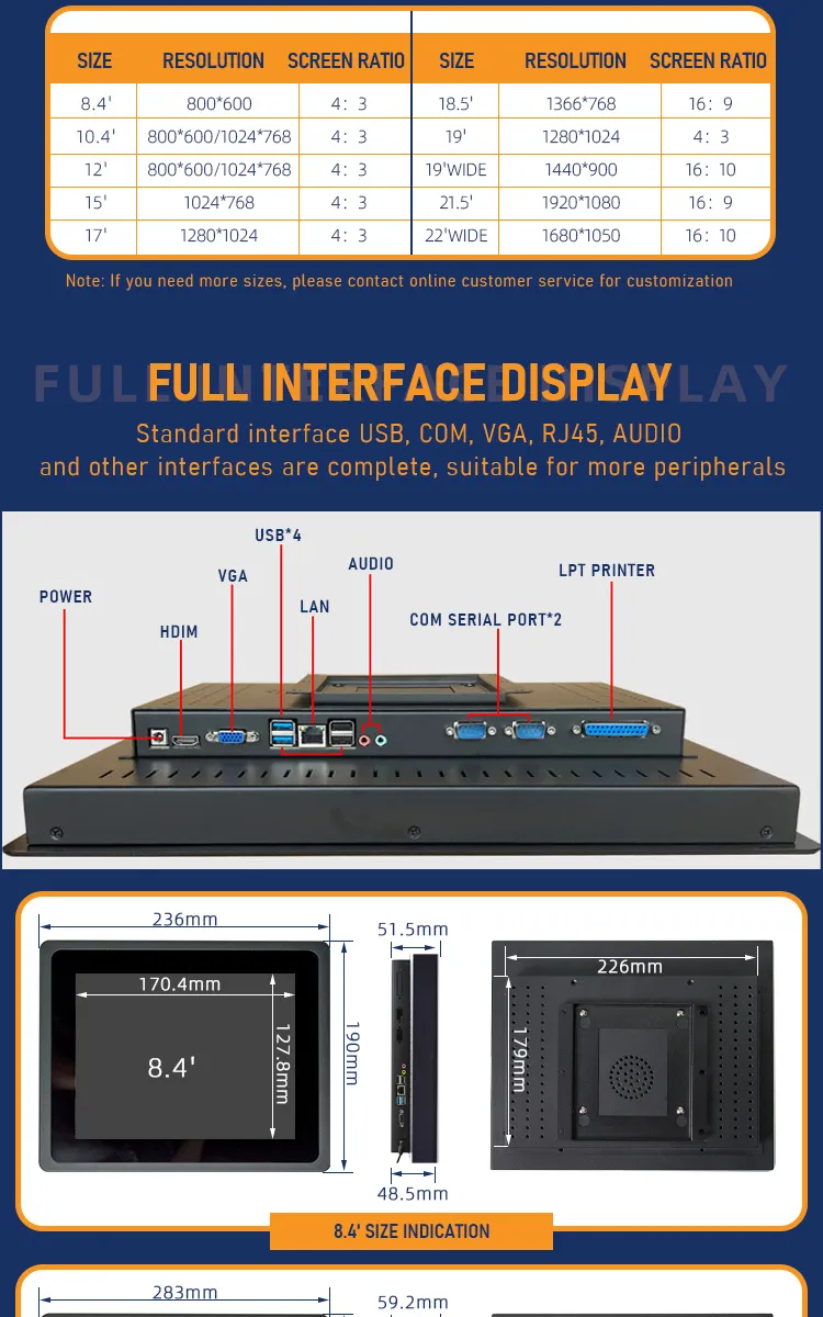 Interface: RS422/485, HDMI, VGA, LAN, USB, MIC, COM and more